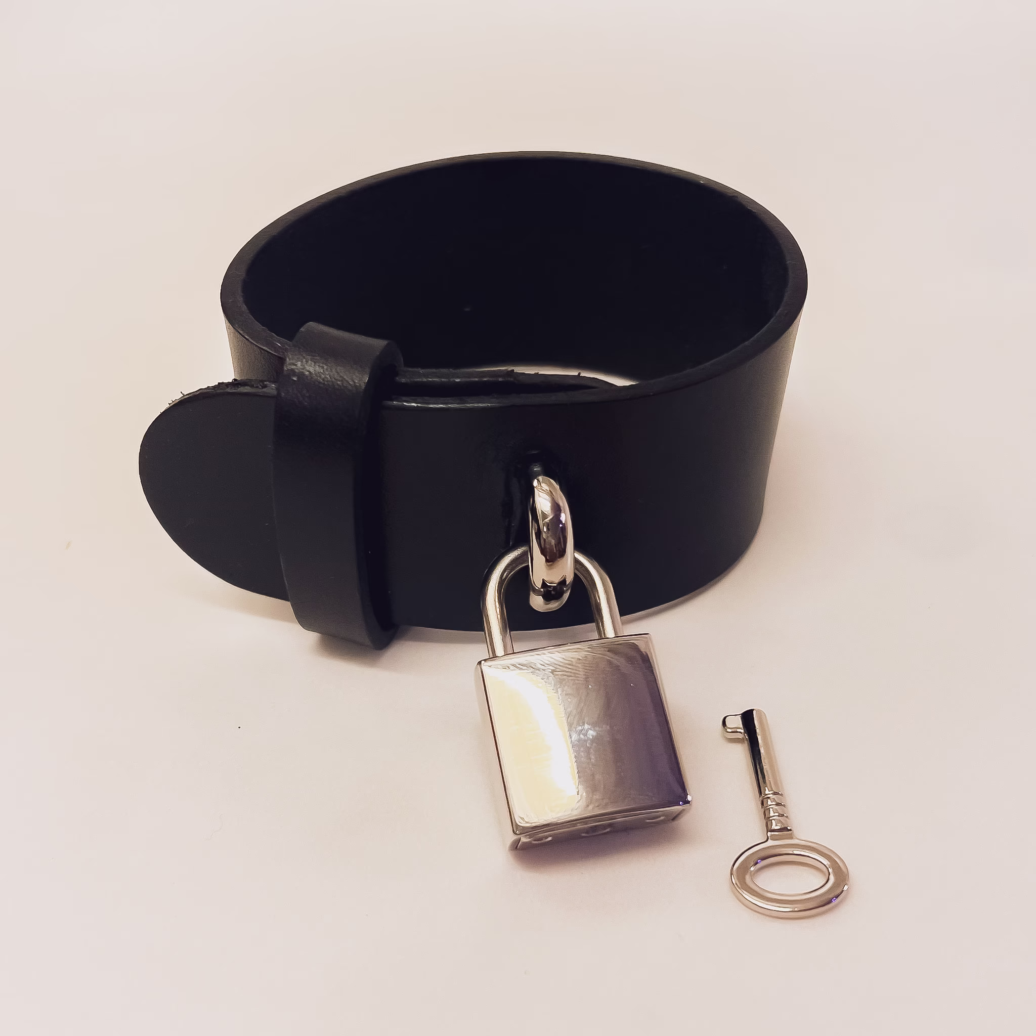 Introducing the Elegant Cuff as a single unit, meticulously crafted from smooth Tärnsjö luxury leather. This cuff is designed to add a bit of edge to your style. Fastened with a small padlock around the wrist.