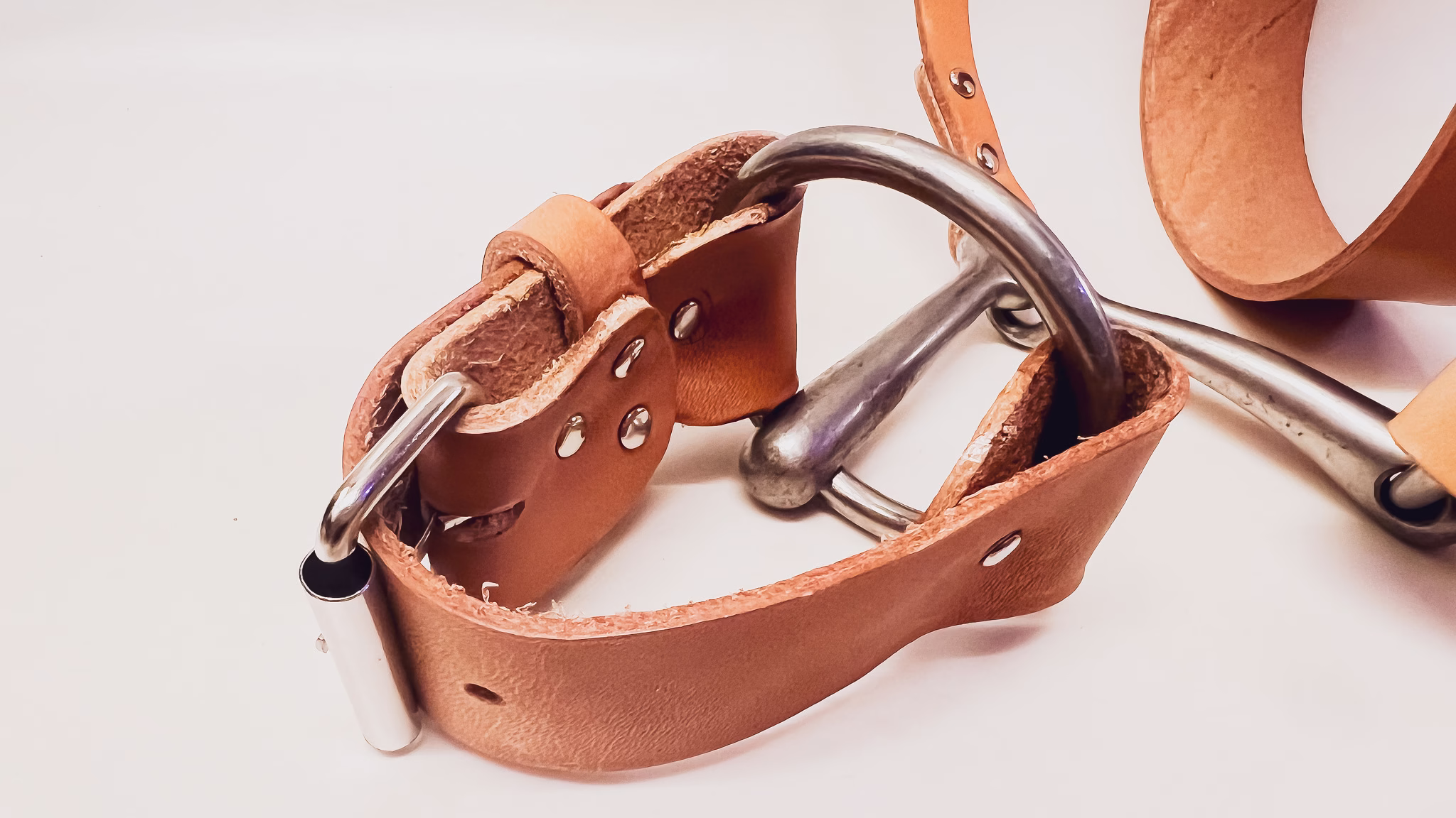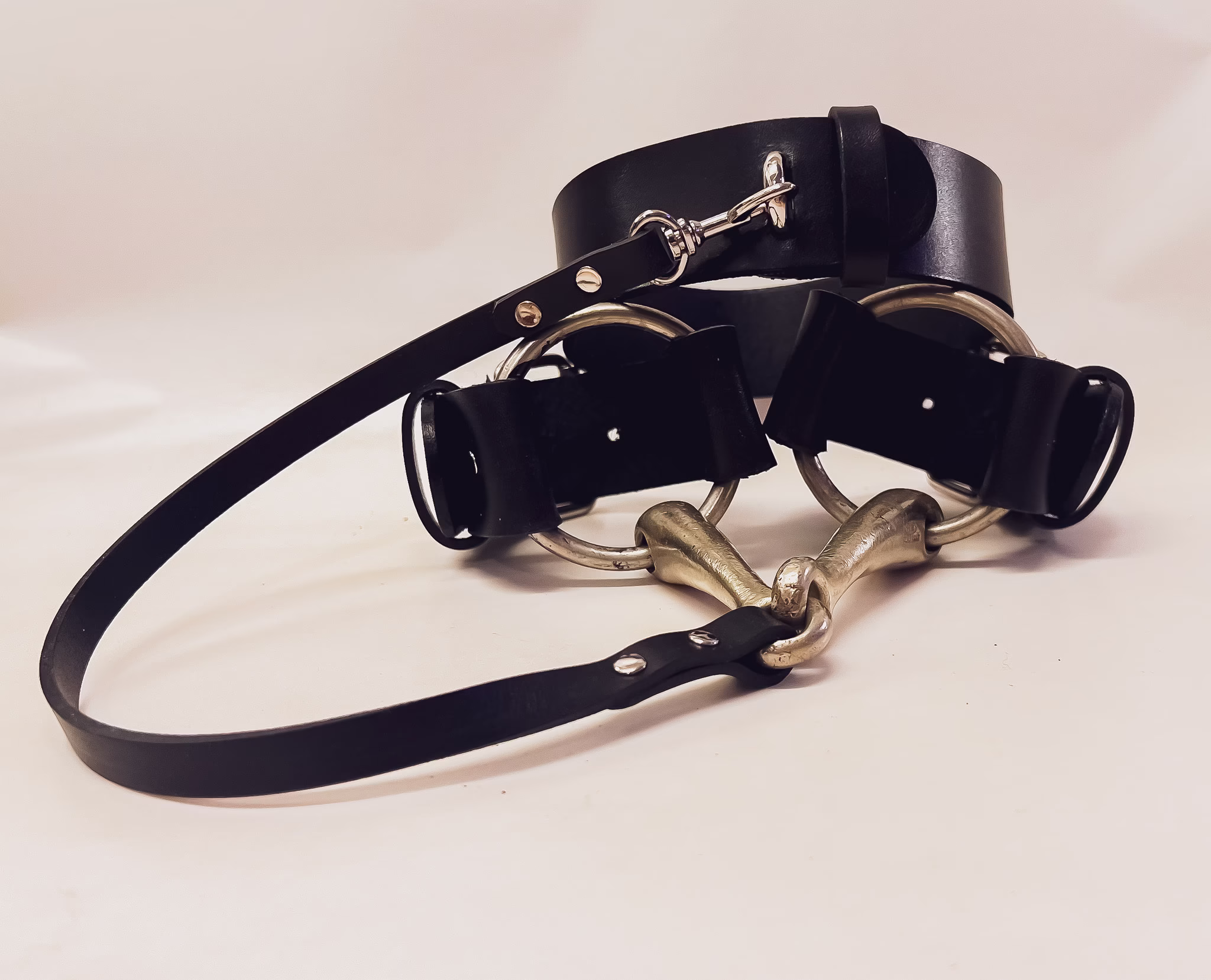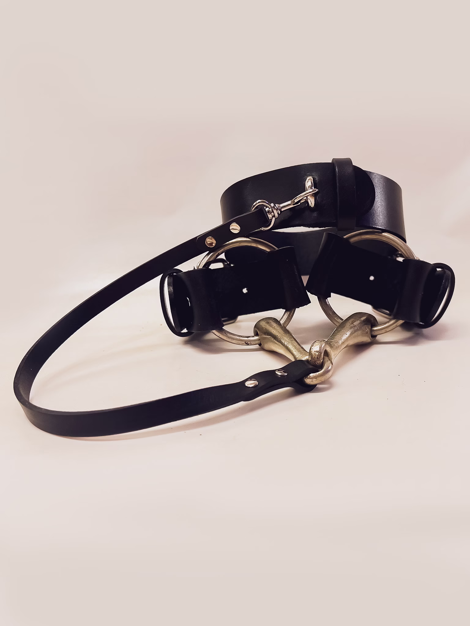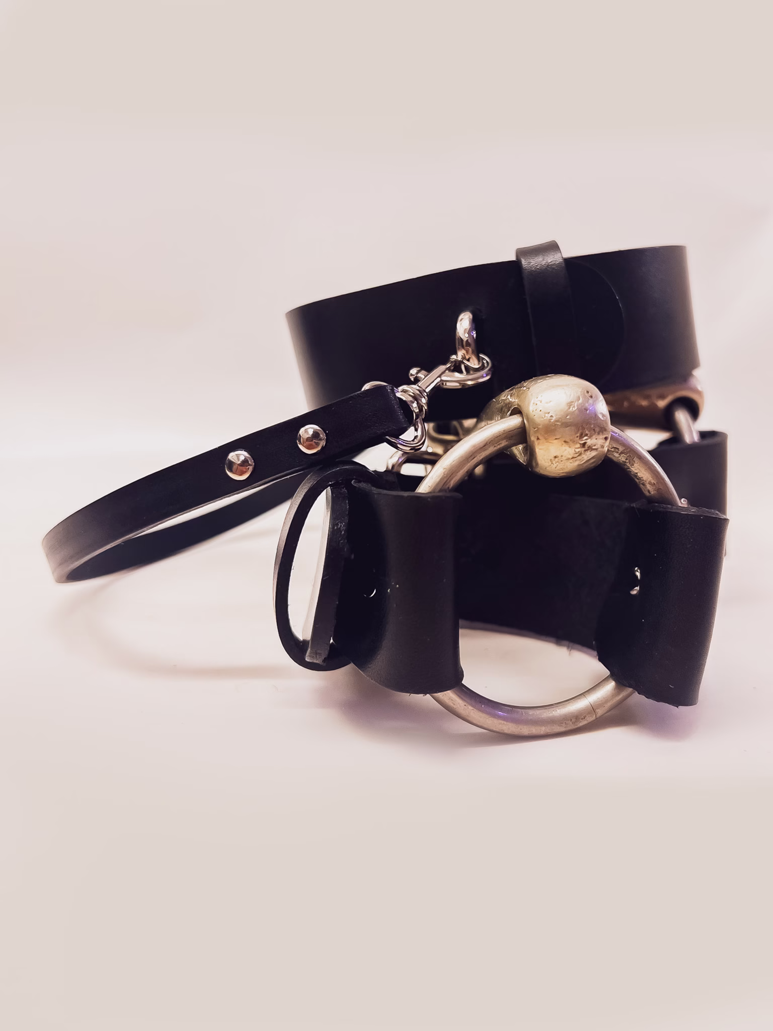 This set features a wide collar, two cuffs, and a slim leather leash, all designed around an authentic equestrian bit upcycled from one of Stockholm’s most exclusive riding schools. The result is a piece that feels lived-in, powerful, and irresistibly unique.