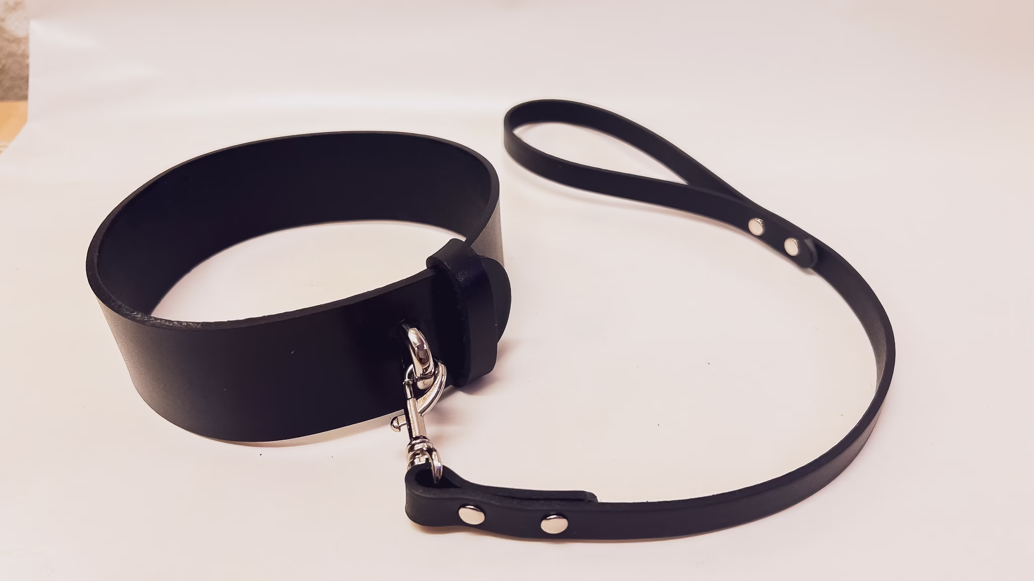 Finished in silver hardware, the cuffs detach from the collar, the leash comes off with a click, and the whole set shifts with your mood. Wear just the collar. Just the cuffs. All three. Switch, tease, pull, guide.